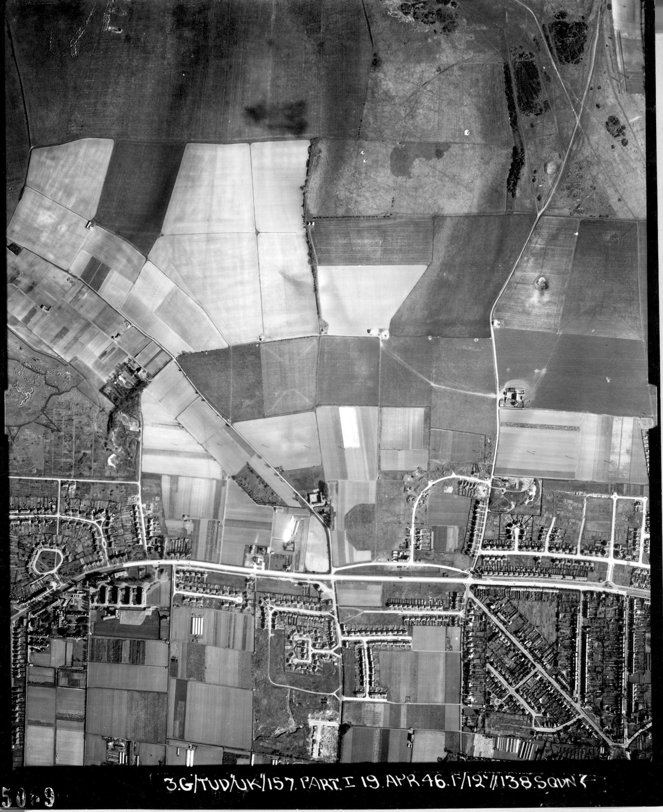 Designation: NH12 / H23. Visible on the 1946 vertical AP. Four square type gun pits.