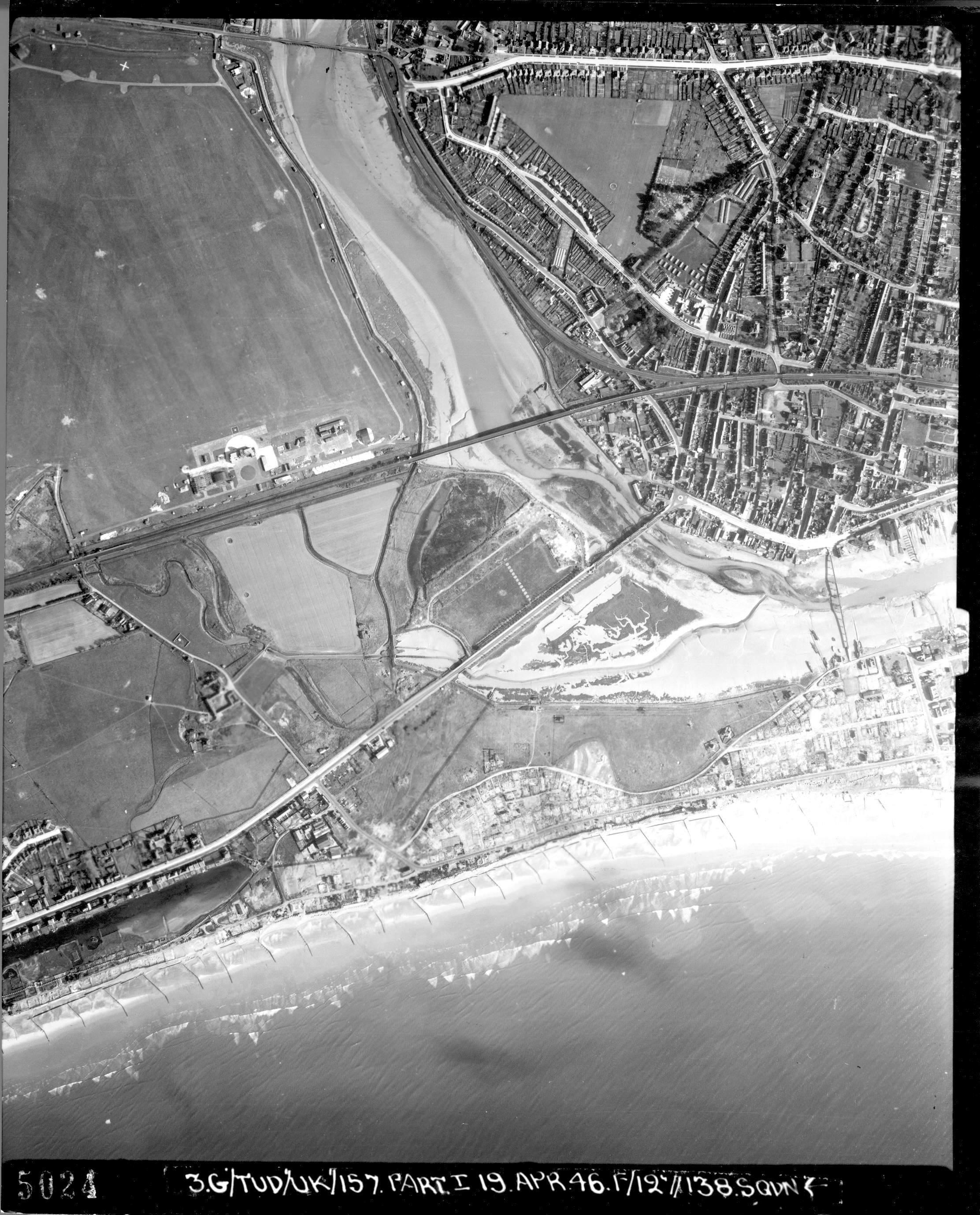 Description: A field gun emplacement of a standard Sussex trapezoidal shape is vissible on an RAF Aerial photo dated April 1946.